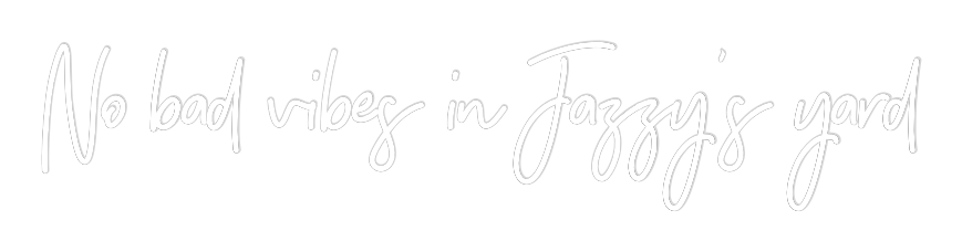 Font/Color: No (Font: Wildscript, Color: RGB (+50%)) bad (Font: Wildscript, Color: RGB (+50%)) vibes (Font: Wildscript, Color: RGB (+50%)) in (Font: Wildscript, Color: RGB (+50%)) Jazzy’s (Font: Wildscript, Color: RGB (+50%)) yard (Font: Wildscript, Color: RGB (+50%))